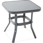 Frame: Powder coated steel, Cushion cover: Polyester, Cushion filling: Polyfibre, Table: Metal, Glass