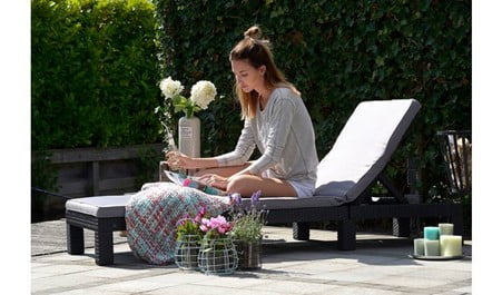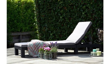 The Daytona sun lounger is the ideal partner when relaxing through the summer months. This comfortable sun lounger with full-length cushion has an adjustable back with 4 positions; ideal when you want to alternate from sitting upright to lying flat to sunbathe. The sleek rattan effect design is durable, weatherproof and fade-free so you can enjoy it all year round. However, the cushion will need to be stored indoors.