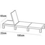 • Size H22, W65, D195cm.