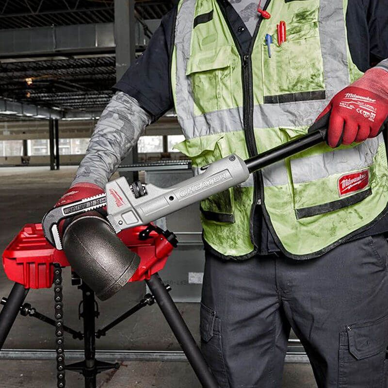 • The Milwaukee CHEATER aluminium adaptable pipe wrench is the most adaptable pipe wrench with an all-in-one design that delivers maximum productivity to the professional user. With a multi-length, quick slide handle that locks anywhere the aluminium cheater pipe wrench gives you the flexibility of an 11″ or an 18″ to 24″ aluminium pipe wrench. The Cheater pipe wrench features an overbite jaw offering the largest grip surface. The best adaptable pipe wrench by Milwaukee is just like the basin wrench, the Cheater pipe wrench is a must have for any plumbers toolbox.