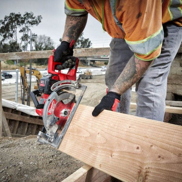 - Rear handle design circular saw with blade left allows the user excellent cut line visibility.