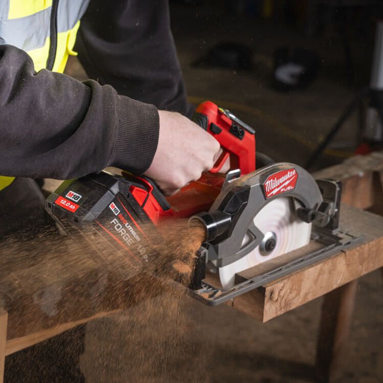 • Milwaukee M18 FUEL Gen 3 cordless circular saw is designed for efficient and precise cutting tasks. Ideal for professional joiners and carpenters needing to cut timber and sheet materials on construction sites. The brushless circular saw features Forge technology to deliver consistent power, achieving 6000rpm for fast rip cuts. A 190mm blade provides a 68mm cutting depth suitable for working on stacked sheets, and a bevel capacity up to 50° allows versatile angled cuts. The Magnesium shoe is compatible with Milwaukee guide rails, ensuring accurate straight cuts at any angle.