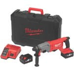 High performance 4-mode D-handle SDS Plus hammer drill incorporating a Powerstate brushless motor for more power and longer motor life. RedLink Plus intelligence system delivers advanced digital overload protection and enhances performance under load. In-line ergonomics provide extended reach for overhead and downward drilling applications. RedLithium-Ion battery pack with fade-free performance to deliver more run time and work over pack life. Flexible battery system means the M18 batteries work with all M18 tools in the range. Supplied with blow-moulded case