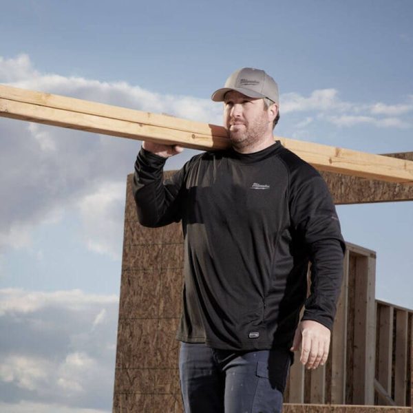 • The Milwaukee heated base layer powered by REDLITHIUM USB battery technology with carbon fibre heating elements to create and distribute heat to the chest and back. This black WorkSkin heated baselayer by Milwaukee has a quick-heat function allows you to feel heat 3X faster in the chest and upper back heating zones. The Milwaukee USB rechargeable heated WORKSKIN base layer is the best heated base layer features raglan sleeves and seamless shoulders for an improved range of motion and comfort while working. Safe and secure shopping online from big red power tools. The Milwaukee L4 HBLB black heated base layer provides a versatile layering piece for total body warmth whilst working on the job and drilling holes with a Milwaukee combi drills on the jobsite.