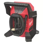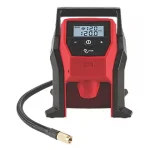 - Compact and lightweight inflator for the fast inflation of car, light truck or compact equipment tyres. Features an anti-vibration stand and illuminated LCD display with a digital pressure and fuel gauge displaying remaining charge. Easily stores 66cm hose and attachments with an all-brass schrader chuck. Compatible with all Milwaukee M12 batteries