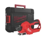 Durable planer with 2mm depth and 56mm width to perform in the most common user applications. Features brushless motor and Redlink electronics delivering more power and runtime. Drum holds 2 TCT reversible blades and runs at 14,000rpm for smooth, consistent and continuous planning. Base provides kick stand to protect work from accidental damage and up to 17.5mm of rebate depth with on-board blade storage for 2 additional TCT blades. Compact and lightweight for one handed usage in a variety of orientations. The dual-sided dust port improves chip ejection to the left or right. Compatible with all Milwaukee M12 batteries.