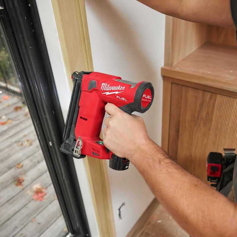 - The Milwaukee 18 gauge compact brad nailer delivers peak productivity at the jobsite, providing users with unmatched nailing performance & access to tight spaces with the compact, lightweight, ergonomic design. This Milwaukee compact finish nailer is leveraging a nitrogen air spring mechanism, this brad nailer enables users to sink 16mm – 38mm brad nails to the proper depth in both hard and soft materials while leaving clean, consistent nail holes. Safe and secure shopping online from big red power tools. The Milwaukee M12 FUEL brushless 18ga straight finish nailer is the best cordless compact 18ga brad nailer with the most access of any cordless brad nailer in the lightest weight design at only 2.1kg when paired with our M12 REDLITHIUM 2.0Ah battery. The Milwaukee M12 FCN18GS cordless 18 gauge compact brad nailer can be used with the Milwaukee 18 gauge brad nails (available separately) for 32mm total length nails (16 / 19 / 25 / 30 mm) also available.