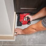 - Small work contact bracket allows the user to fire and sink nails at a more acute angle.
