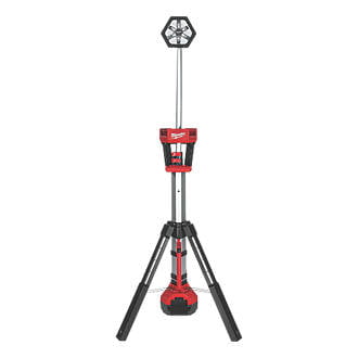 Milwaukee 18V LED stand light. Features Trueview HD lighting technology. Impact-resistant adjustable heads with highly durable polycarbonate lens. Can be rotated 180° vertically and pivoted 240° horizontally.