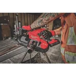 • Cordless bandsaw with a Powerstate brushless motor, RedLithium battery pack and the RedLink Plus intelligence system, providing excellent power, run time and durability. Suitable for one-handed, overhead use in tight spaces. Features a variable speed trigger and tool-free blade locking mechanism for quick and easy saw blade changes. Solid metal rafter hook for job site storage. Compatible with all Milwaukee M18 batteries.