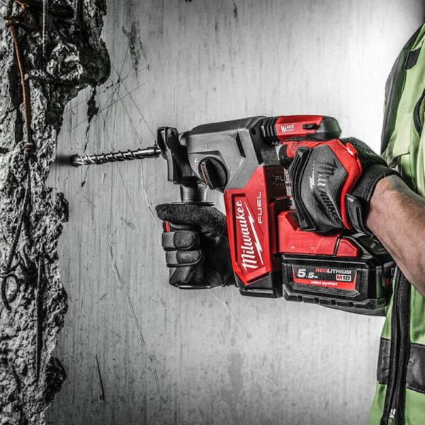 The Milwaukee M18 SDS plus rotary hammer delivers users 2.5 Joules of impact energy, 1,330rpm, and 4,800bpm, providing speed and power in the most demanding applications. This cordless sds drill delivers fast drilling, hard-hitting performance and maximum control for productivity on the jobsite. Designed to achieve top performance with only moderate pressure. The Milwaukee M18 FUEL 4-mode 26mm SDS-plus hammer is the best cordless sds drill for drilling 10mm diameter holes in concrete, optimised for drilling between 6mm and 20mm diameter holes. The Milwaukee M18 FH cordless sds+ hammer can be used to drill upto 28mm drill bits in concrete.