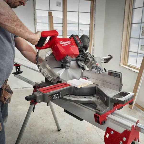 • Delivers the power to cut at the same rate of an equivalent AC 305 mm saw, with the ability to cut up to 500 pieces of 78 mm pine base board on one 12.0 Ah battery charge.