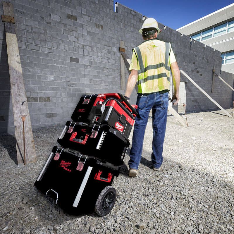 The M18 FUEL™ PACKOUT™ wet/ dry vacuum is fully compatible with the MILWAUKEE® PACKOUT™ Modular Storage System.