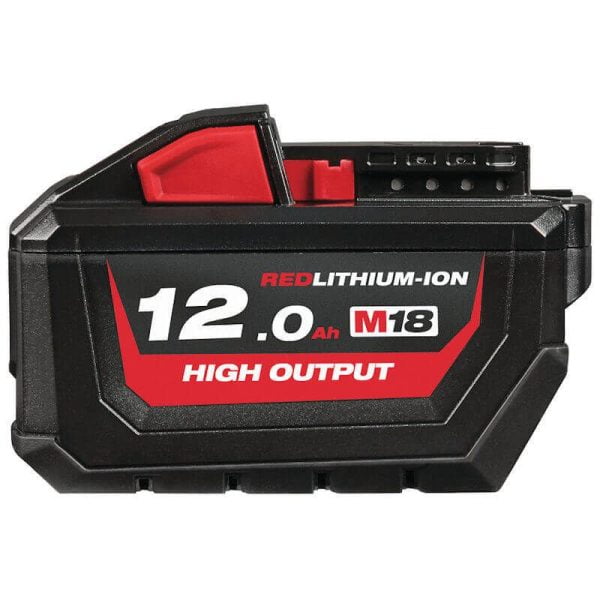 - The new M18™ 12.0 Ah HIGH OUTPUT™ battery pack provides up to 50% more power vs M18™ REDLITHIUM™-ION battery packs.