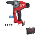 - The Milwaukee M18 rivet gun has 20kN of pulling force for fast installation of high strength blind rivets in all materials. This cordless pop riveter eliminates the need for hoses and compressors and has been designed to withstand harsh shop or assembly plant environments. The Milwaukee M18 FUEL rivet tool with ONE-KEY is the ideal cordless solution for installing structural rivets including Avdel monobolt rivets. The Milwaukee M18 ONEFPRT cordless pop riveter with one-key tracking can be used with Milwaukee sheet metal shears for metalworking and fabrication.