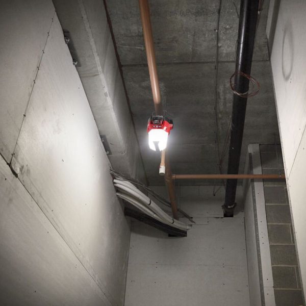 • Equipped with a 10.8 cm self-centering metal hook, users can hang the light overhead on studs and piping.