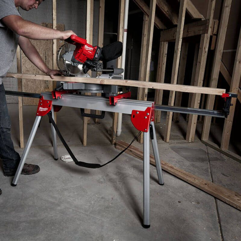 - The Milwaukee mitre saw stand designed for increased portability and jobsite durability, with aluminum main beam construction. This universal mitre saw stand has steel legs and support extensions designed for maximum strength and rigidness to support even the heaviest work pieces. The Milwaukee Mitre saw stand extendable up to 2.5 m is the best mitre saw stand that’s quick to assemble and setup within seconds, the legs also collapse for compact storage. The Milwaukee MSL 2000 mitre saw stand can be used to support Milwaukee mitre saws for easier cutting at height or on uneven ground.