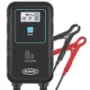 • Fully automatic 8A battery charger suitable for 12V vehicles. Easy to read LED indicators. Storage for battery clips and AC plug