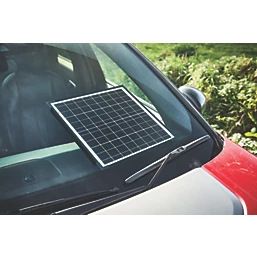 • Solar-powered, water-resistant, battery maintainer that works even in overcast conditions. Suitable for all 12V vehicles. Low carbon way to maintain a vehicle battery when not in use. Ideal for caravans, classic cars, small cars, motorcycles, golf trolleys and jet skis. Built-in, anti-reverse charging protection prevents the car battery being drained if the solar panels voltage is lower than the battery voltage during conditions without sunshine. Supplied with DC power plug and battery clips. Can be used with RSPOBDN solar power vehicle cable (701YL, sold separately) to provide a permanently ‘On’ link between solar panel and battery for long-term battery maintenance.