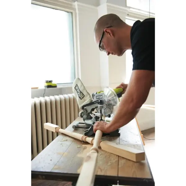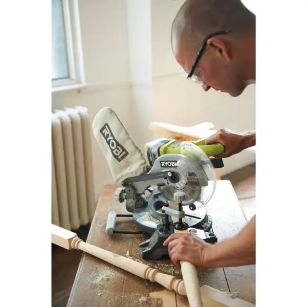 • The Ryobi EMS190DC Cordless Mitre saw is ideal for cutting skirting boards, noggin pieces, or any application that requires a quick and accurate crosscut at a selected angle. The 18V motor achieves a no-load speed of 4500rpm to easily cut 38x108mm at 90°. Adjust the angle of cut with the pre-selected mitre angles at 0,15,22.5,31.6 and 45°. Includes a thin kerf 190mm 24T carbide tipped blade for improved performance and runtime. It’s compact, lightweight and cordless design helps you cut at almost any location away from a power source. The included dust bag collects dust and debris while cutting and the clamp helps keep the object you are cutting steady. This tool is sold as a ‘bare’ Tool (without a battery or charger) but is compatible with all batteries and chargers across the 18V ONE+ system of tools for the home and garden.