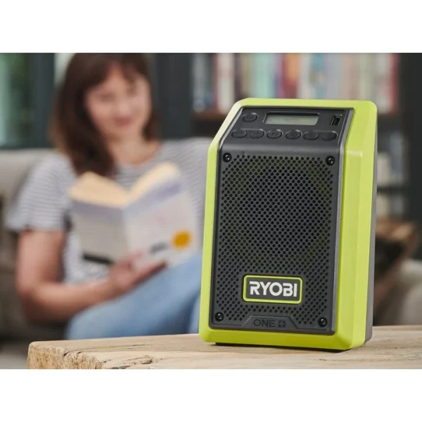 • As part of the Ryobi ONE+™ system of over 200 cordless tools for the home, garden, automotive, crafting and much more, the Ryobi 18V ONE+™ RR18-140 Cordless Bluetooth® Radio is perfect for playing music or radio while in the workshop, camping or even travelling. Our next generation of Bluetooth Radio is here; the new compact ONE+™ Cordless Bluetooth Radio uses a premium 10W speaker to deliver superb sound quality over a range of sounds. Make DIY tasks more enjoyable by playing your favourite tunes with integrated Bluetooth® Wireless Technology that allows you to stream full audio from up to 25 metres away and hear crisp music at a range of volumes. Equipped with both AM/FM radio with digital tuning and the ability to set up to 5-radio station pre-sets, saving the need to tune each time. Furthermore, it incorporates a 2.1 Amp USB charging port for fast most portable electronics such as phones and tablets along with an auxiliary input with a storage location for smartphones which makes this one of the most versatile cordless radios available.