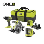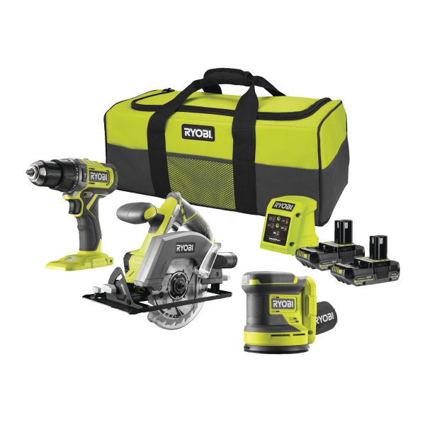 RYOBI 18V ONE+ Cordless Combi Drill, Circular Saw & Random Orbital Sander Starter Kit (2 x 2.0Ah) RCK183DL-2C20S