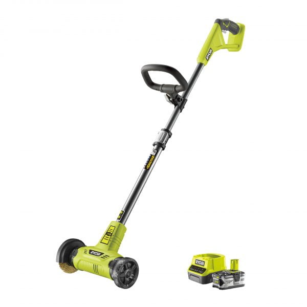 • As part of the Ryobi ONE+™ system of over 150 cordless tools for the home, garden, automotive, crafting and much more, the Ryobi 18V ONE+™ RY18PCA-120 Patio Cleaner with wire brush starter kit is perfect for clearing weeds and grass from between bricks, paving slabs and so much more!