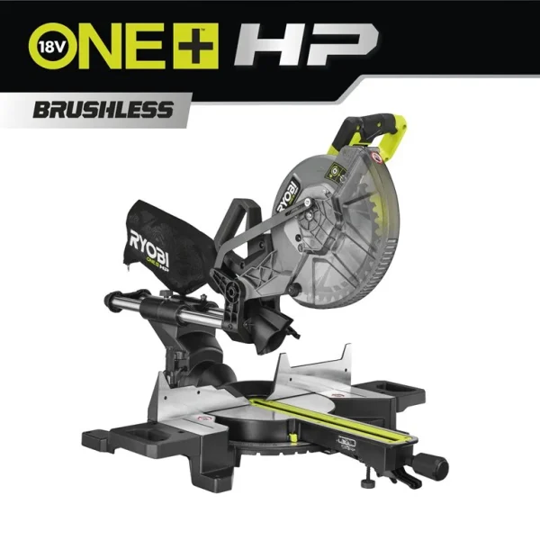 As part of the Ryobi 18V ONE+™ system of over 200 cordless tools for the home, garden, automotive, crafting and so much more, the Ryobi 18V ONE+™ HP Cordless Brushless 254mm Sliding Mitre Saw is perfect for making straight or angled cuts in wood trim, door facings, skirting boards and so much more.