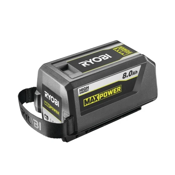 - TAs part of the Ryobi 36V MAX POWER system of outdoor cordless tools for the garden, the RY36B80B 36V High Energy 8.0Ah Ryobi Lithium+ Battery is perfect perfect for those with larger gardens and demand more power and runtime to complete their tasks.