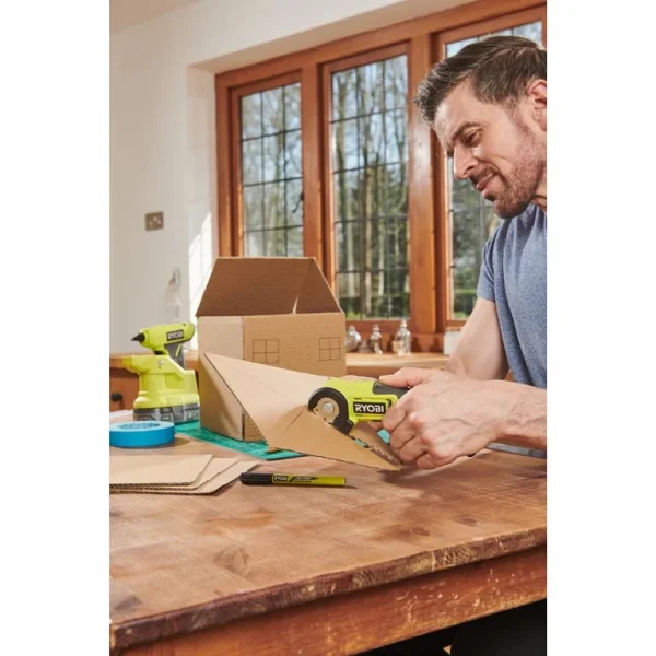 As part of the latest cordless range from Ryobi, the RCT4-0 4V USB Lithium Cutting Tool is perfect for DIY projects or hobbies requiring light cutting. Effortlessly slice through light plastics, cardboard, leather and cloth up to 6mm thick, this tool is ideal for working on a variety of upholstery, crafting and DIY projects. The self-sharpening ¼ inch thick blade ensures consistent tool readiness for ‘grab and go’ convenience.