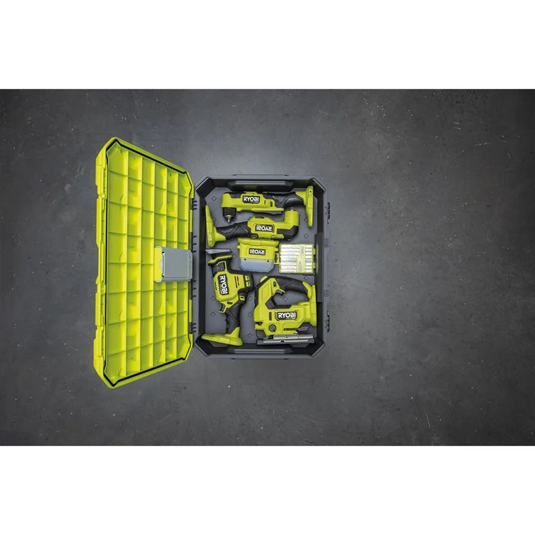 This Tool Box is IP65 rated to protect your items from water and dust in any environment. The integrated RYOBI accessory bit storage and included Double and Single Organizer Bins provide maximum organization and easily secure your items with a locking point.