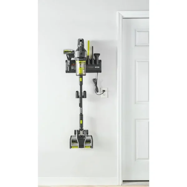 Anti Tangle Stick Vac wall mounted charger with handy accessory storage
