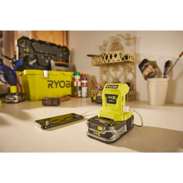 As part of the Ryobi 18V ONE+™ system of over 200 cordless tools for the home, garden, automotive, crafting and much more, the Ryobi 18V ONE+™ R18USB-0 Cordless USB Power Adaptor is perfect for charging small electronics devices such as smart phones, tablets, MP3 players and much more!